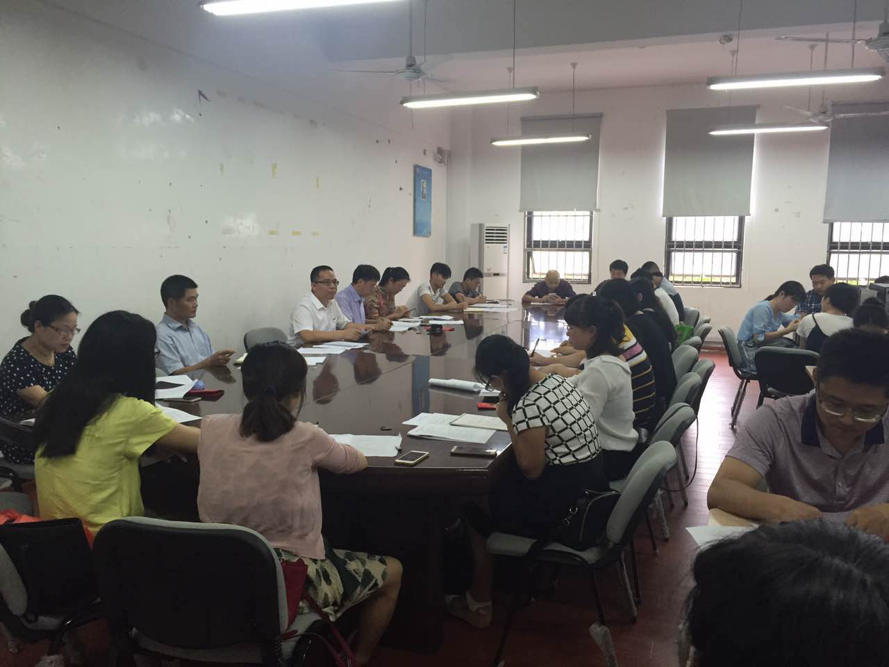 9月8日上午,经管学院2017~2018学年第一学期教职工大会在同心楼信214召开,会议由院长蔡立雄主持,党委书记戴腾荣、副院长吴盛汉、党委副书记郑凌燕以及全院教职工出席会议。