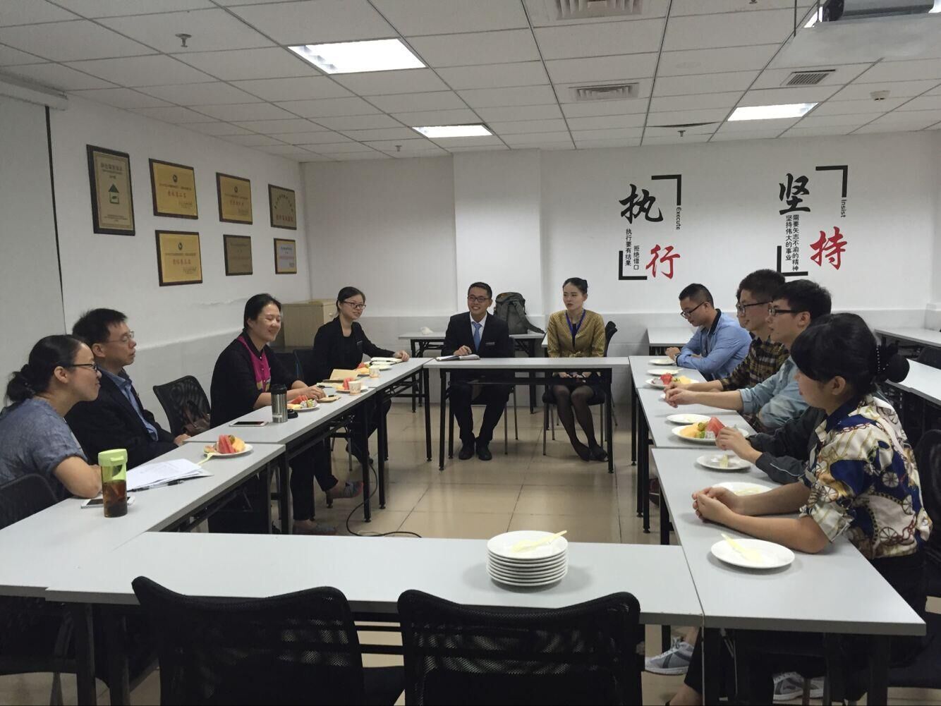 为深入了解旅游管理专业学生在外实习情况,切实加强对学生实习工作的指导,10月14日,经济与管理学院党委书记戴腾荣、党委副书记郑凌燕率部分实习指导老师与辅导员前往泉州晋江佰翔酒店看望部分2014级旅管专业实习学生。