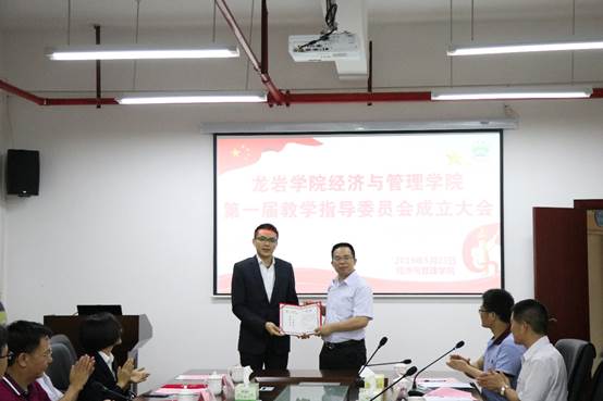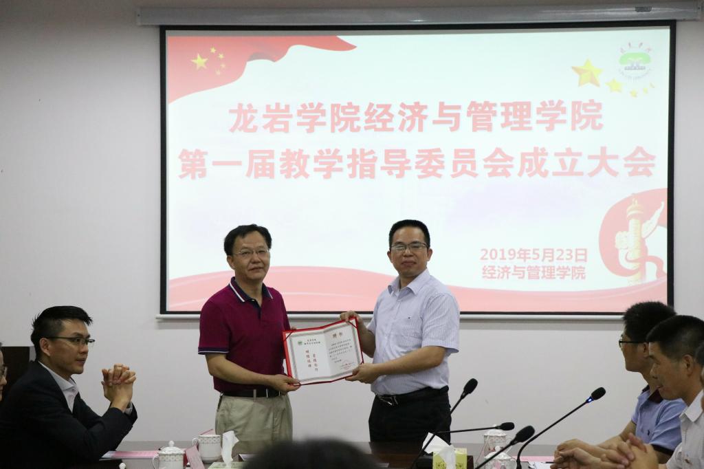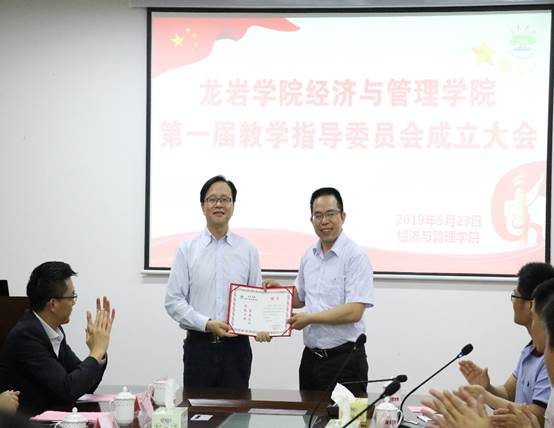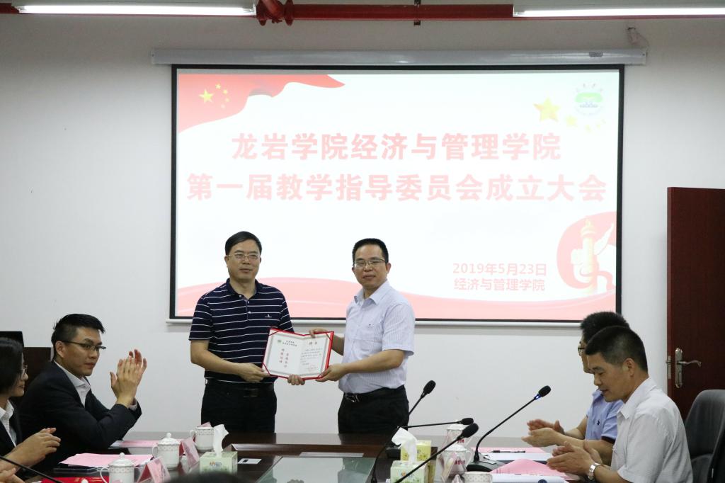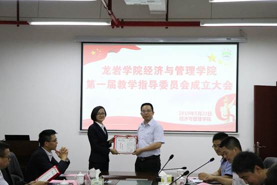 会议审议通过了《经济与管理学院教学指导委员会工作章程》。《章程》规定,教学指导委员会成员由院主要领导、学科带头人、业界专家构成,主任和负责人分别由院长和分管教学工作副院长担任。教学指导委员会主任蔡立雄为业界专家委员们颁发了聘书。