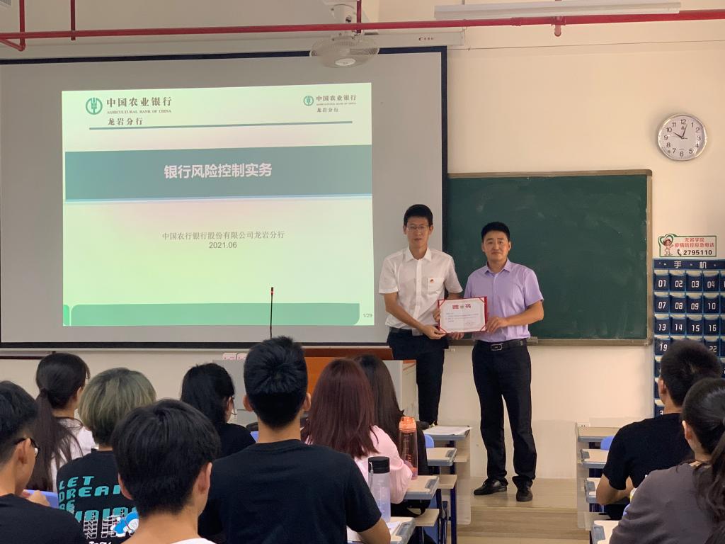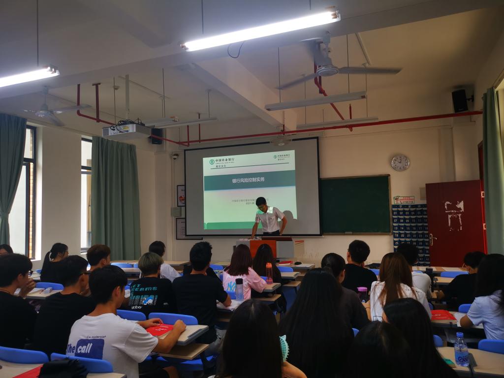 6月22日,经管学院业界教师、农业银行龙岩市分行风险管理部风险经理董益华来到经贸2020(3)班《金融学》课堂,做“商业银行风险管理实务”模块教学。