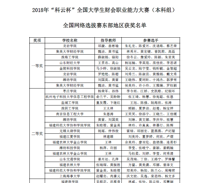 经管学院学生在“科云杯”全国大学生财会职业能力大赛全国网络选拔赛(东部地区)中荣获一等奖