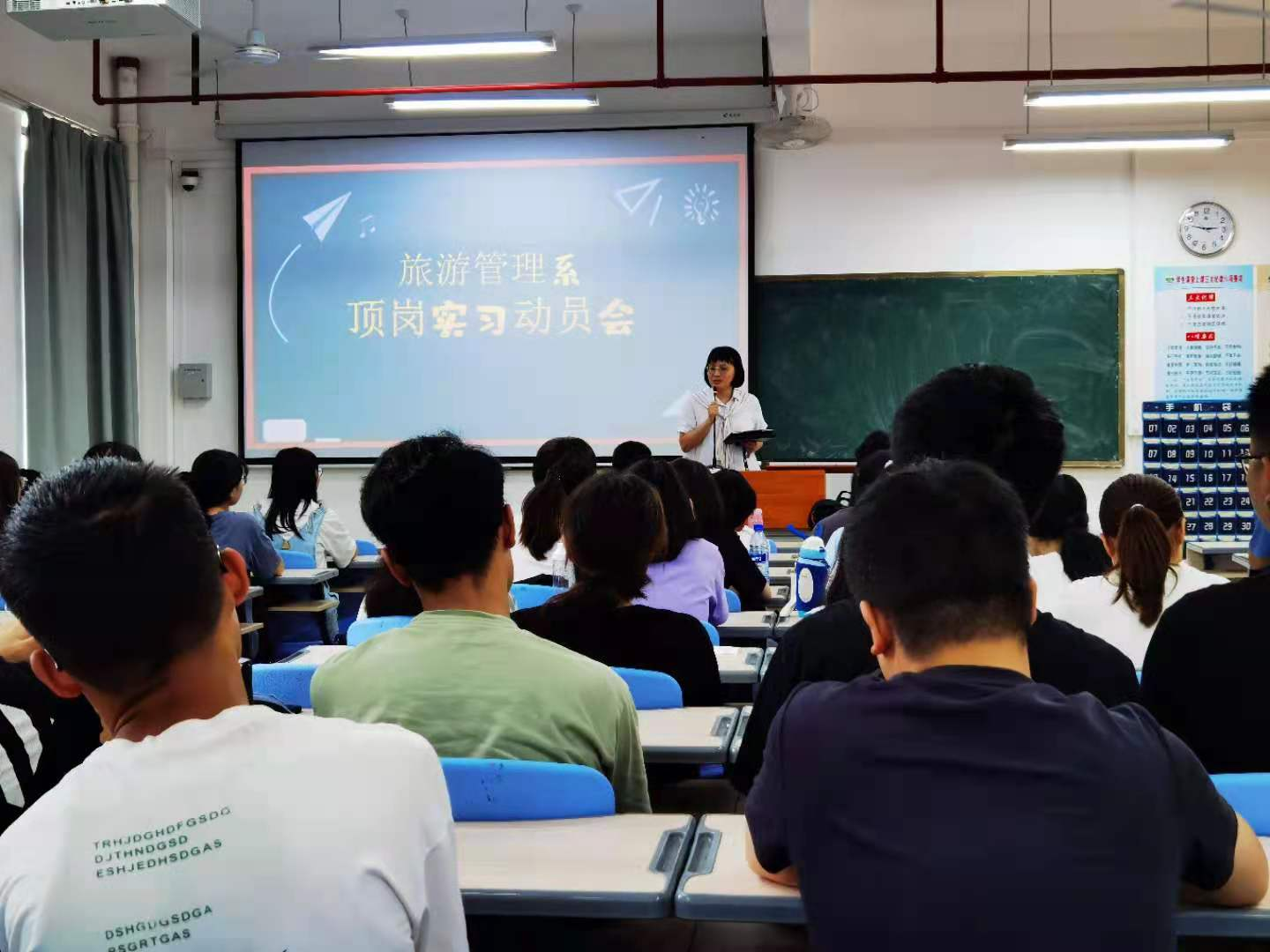6月9日下午,经管学院在厚213举行2019级旅游管理专业实习动员大会,为即将实习的2019级旅游管理专业同学们开展行前教育。戴腾荣教授,副院长吴盛汉、郑国诜,党委副书记张小玲,系主任刘晓刚,辅导员柯圣安以及2019级旅游管理全体同学参加本次动员大会。