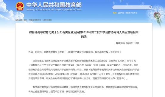 据悉,教育部高等教育司组织有关企业支持高校共同开展产学合作协同育人项目研究,意在贯彻落实《国务院办公厅关于深化高等学校创新创业教育改革的实施意见》《国务院办公厅关于深化产教融合的若干意见》精神,深化产教融合、校企合作,以产业和技术发展的最新需求推动高校人才培养改革。