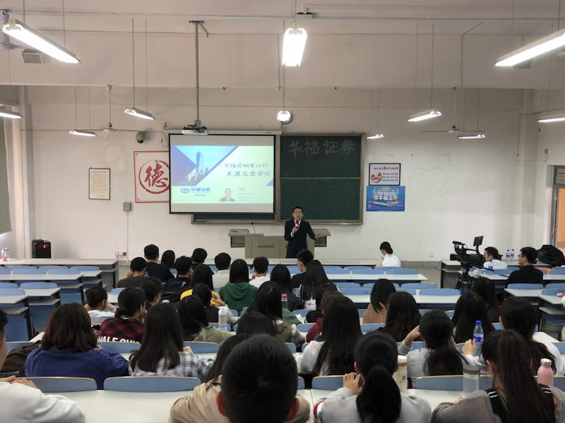 3月29日下午,由龙岩学院经济与管理学院与华福证券有限责任公司龙岩分公司共同举办的“华福启明星计划走进龙岩学院证券知识讲座”在我校文虎楼举行。来自我校经济与管理学院及其他学院的100多名学生参加了讲座。