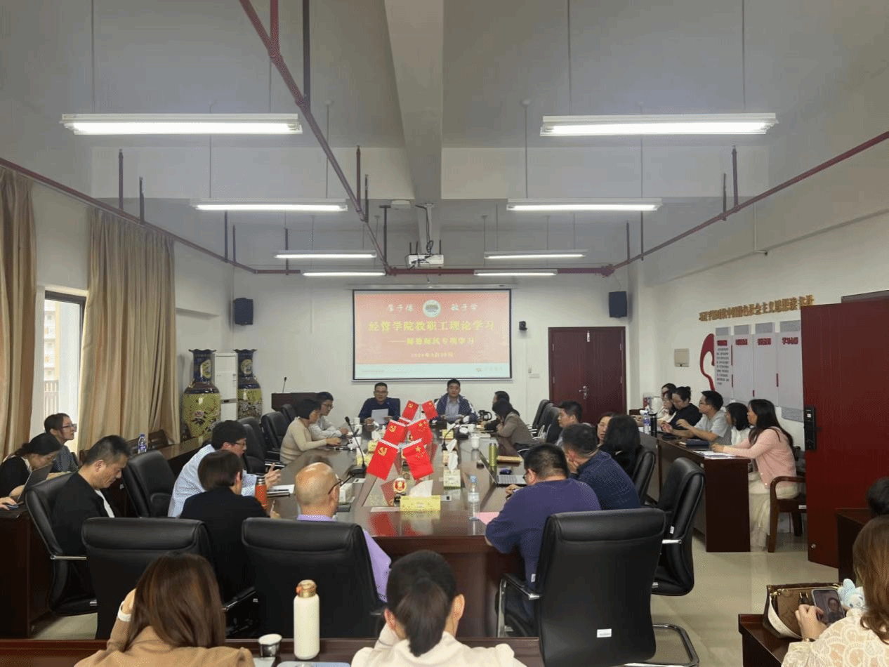 为全面贯彻习近平总书记关于教育的重要论述和全国教育大会精神,经管学院于3月28日在厚德楼619开展师德师风专项学习,学习《教育部办公厅关于进一步压实高校师德师风建设主体责任的通知》。会议由院党委书记卢永衡主持,全院教职工参加学习。