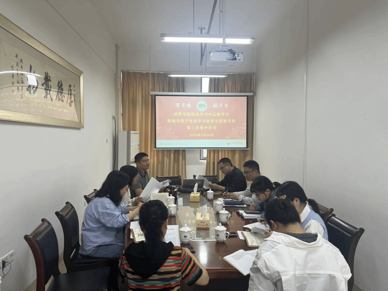 5月20日上午,经管学院在厚德楼622召开理论学习中心组学习暨领导班子党纪学习教育专题读书班第三次集中学习,学习《中国共产党纪律处分条例》第七章。院党委委员、团委书记、院长助理参加会议。