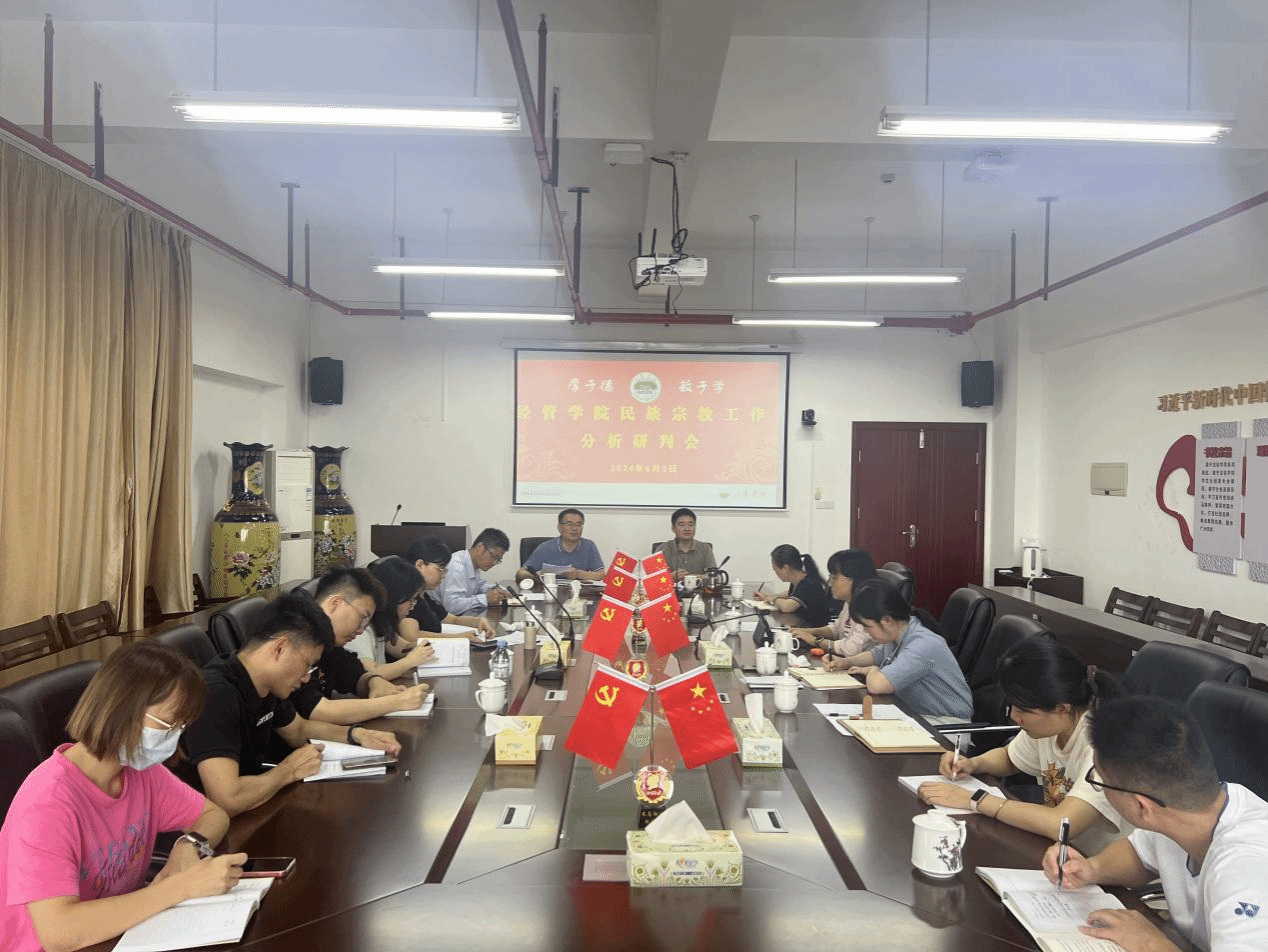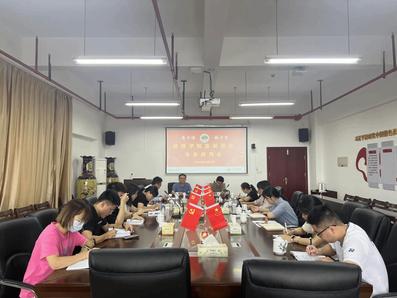 6月3日上午,经管学院于厚619召开2024年上半年意识形态暨民族宗教工作分析研判会。会议由院党委书记卢永衡主持,院党委委员、各党支部书记、各年级辅导员参加会议。