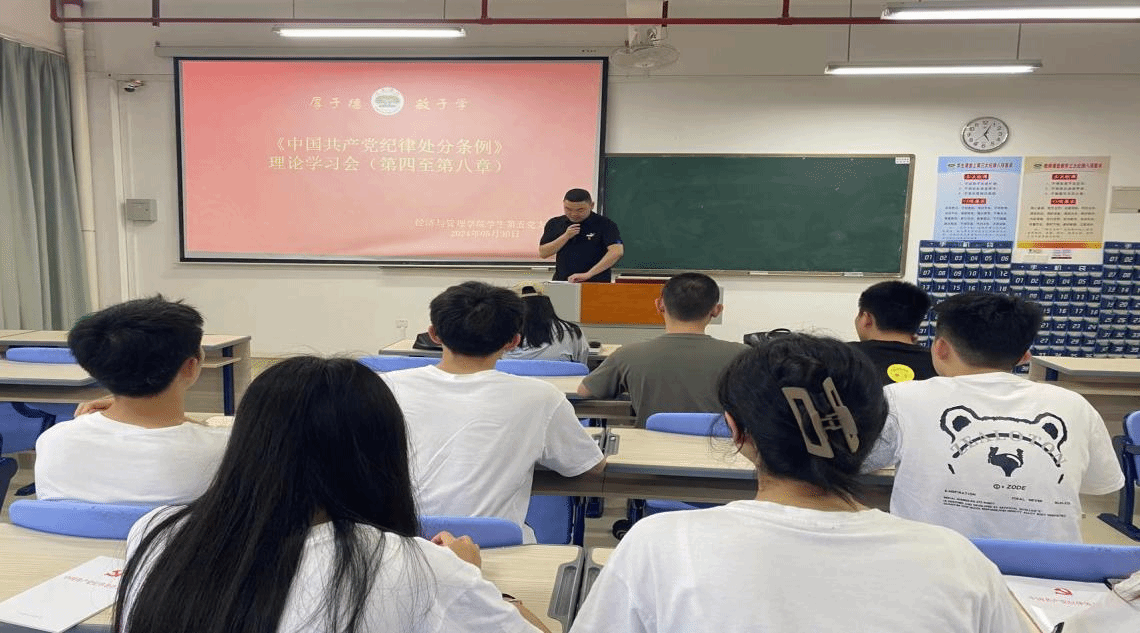 为提升学生党员的政治素养和责任意识,进一步推进党纪学习教育走深走实,5月30日,经管学院学生第五党支部于厚德楼301室开展党纪学习教育专题学习交流,会议由支部书记游生富主持,支部全体党员参加。
