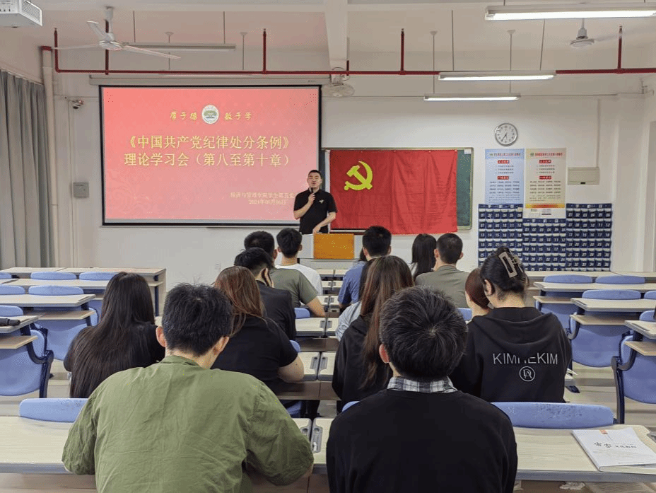 6月6日下午,经管学院学生第五党支部于厚德楼301室开展党纪学习教育专题学习交流,会议由支部书记游生富主持,支部全体党员参加。