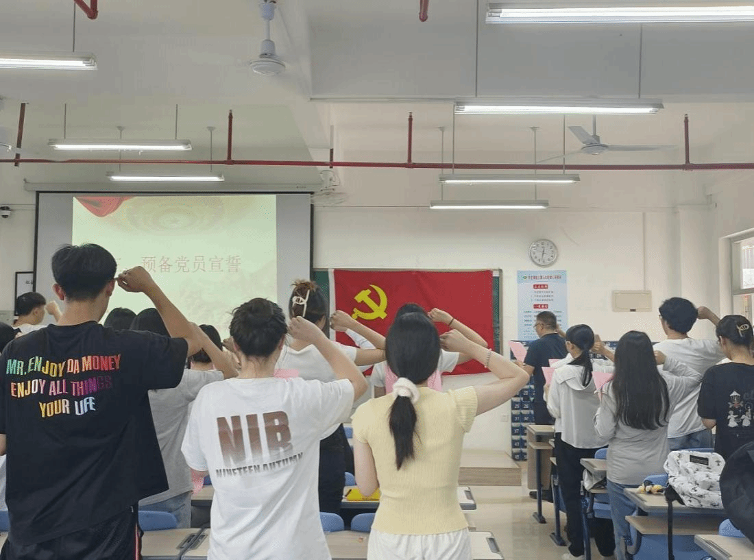 宣誓仪式在庄严的《国际歌》声中拉开序幕。陈淑华宣读2024年上半年新发展的党员名单,卢永衡带领全体新党员,面向党旗庄严宣誓。新党员代表刘仙慧作表态发言。