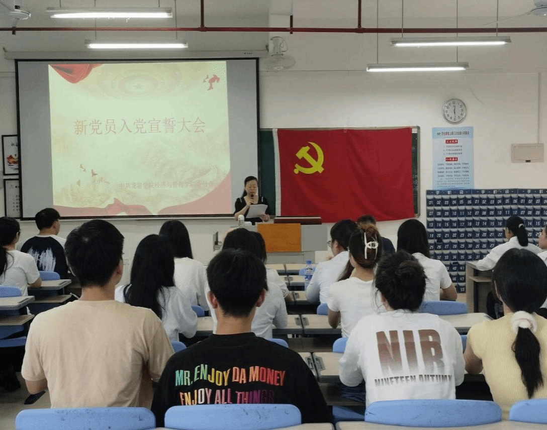 6月19日,经管学院党委在厚德楼401室举行新党员入党宣誓大会,大会由院党委组织委员陈淑华主持,院党委书记卢永衡以及2024年上半年新发展的全体党员参加。