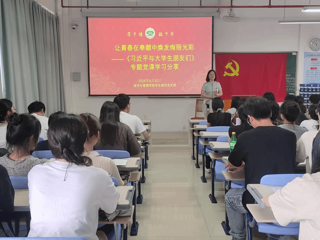 6月22日上午,经管学院学生第四党支部召开“让青春在奉献中焕发绚丽光彩”专题党课暨“以梦为马,筑梦起航”毕业生党员欢送会。本次活动由党支部书记张璐滢主持,支部全体党员参与。