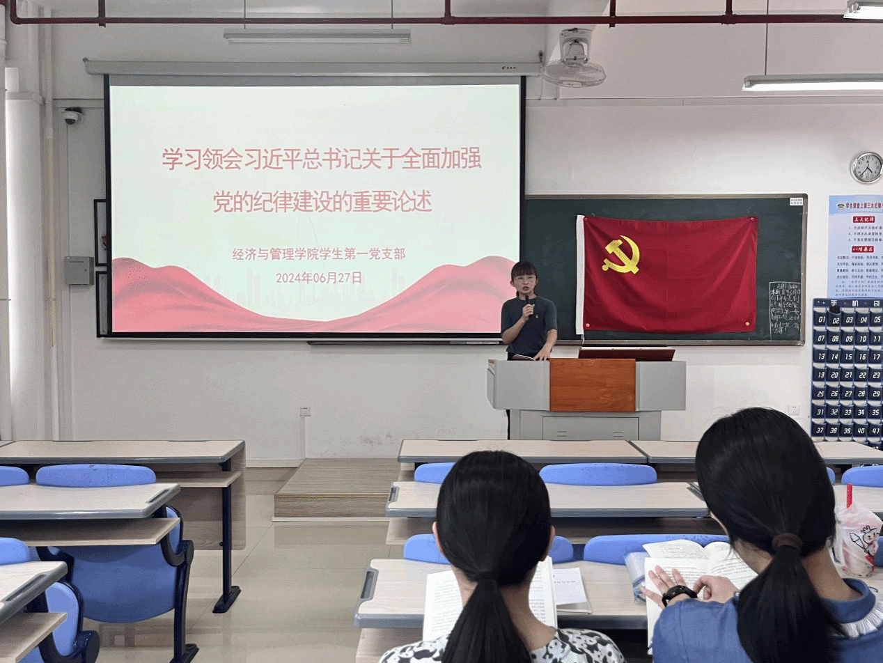 6月27日下午,经管学院学生第一党支部在厚德楼404开展“支部书记上党课——党纪学习教育”专题党课,由支部书记郑梦妮主讲,支部全体党员参加。