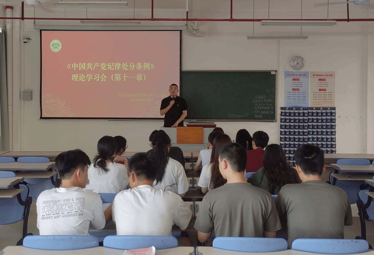 7月2日,经管学院学生第五党支部于厚德楼414室开展党纪学习教育专题学习交流,会议由支部书记游生富主持,支部全体党员参加。