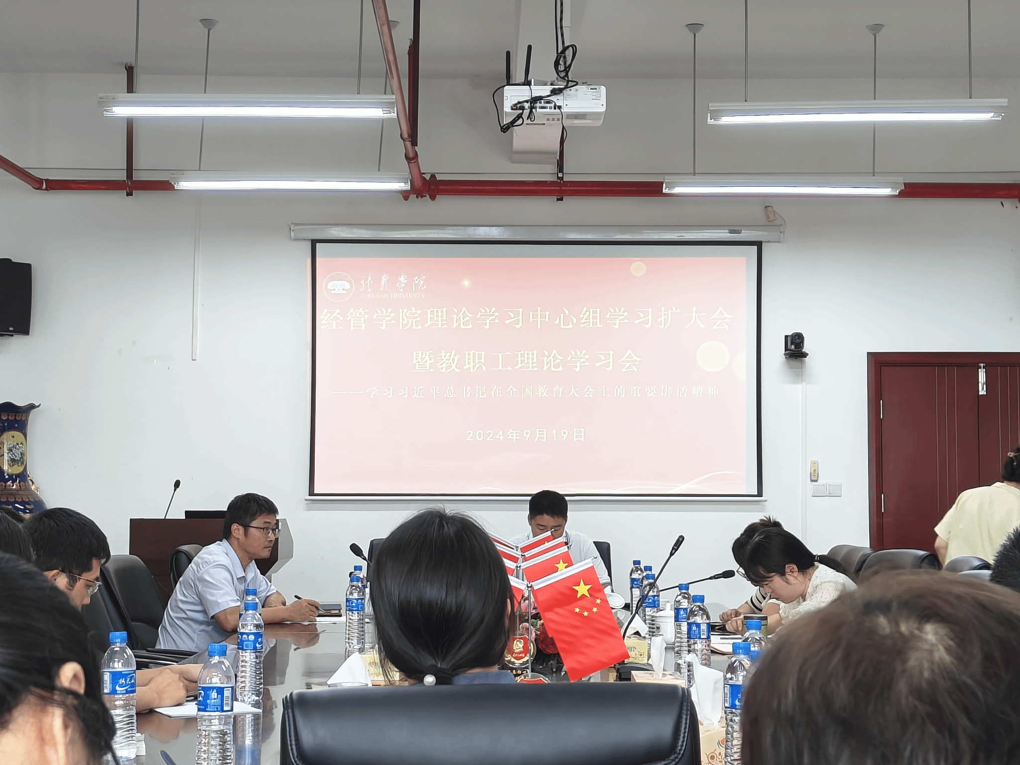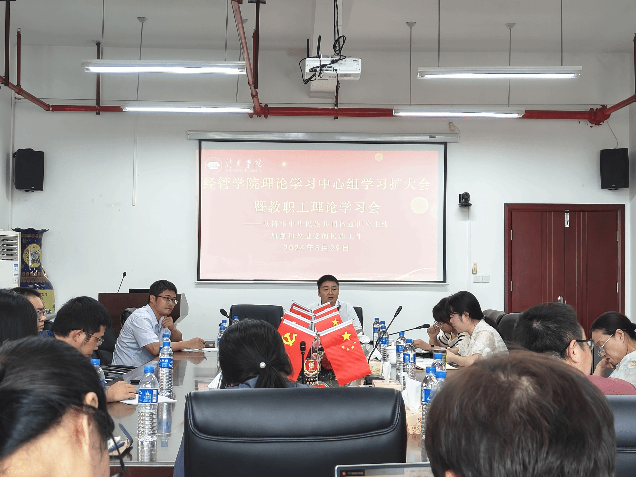 9月19日下午,经管学院在厚德楼619会议室召开理论学习中心组暨教工理论学习会。深入学习贯彻铸牢中华民族共同体意识和习近平总书记在全国教育大会上的重要讲话精神。学习会由经管学院院长黄可权主持,全院教职工参加。
