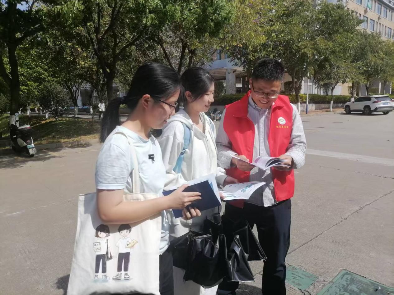 教工第一党支部、教工第二党支部分别在同心楼南门喷泉边和文虎楼开展党日活动,面向在校学生宣传本科教育教学审核评估知识和就业政策,旨在带领学生更加全面的了解评估知识和校情校史,强化学生对人才培养方案的认知,进一步提高对学校的了解,加深同学们对学院的深厚情感。