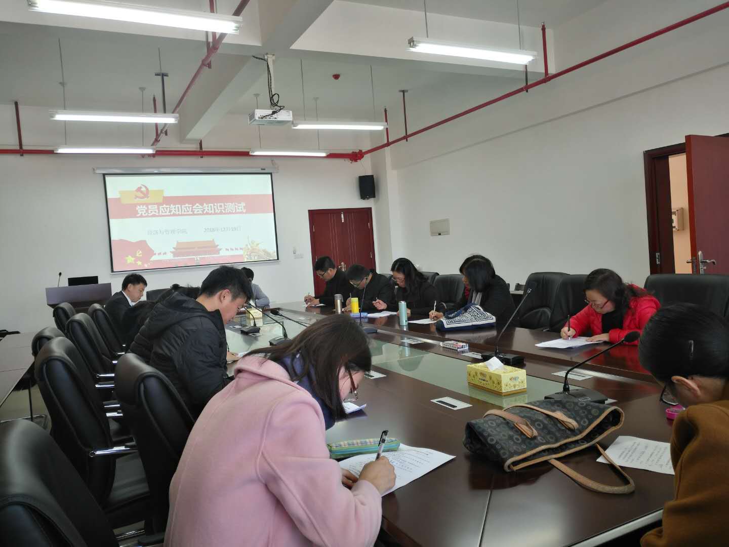 为进一步贯彻落实把全面从严治党落实到每个支部、每名党员,推动全党形成大抓基层、大抓支部的良好态势,取得更好取得成效,2018年12月19日,经管学院全体中国共产党员在厚德楼619举行了“党员应知应会知识”测试。