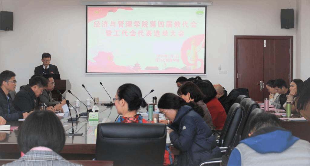 13日下午,经济与管理学院在厚德楼619会议室召开了“双代会”代表和工会委员换届选举大会。选举大会分别党委书记戴腾荣上届工会主席郑凌燕主持。