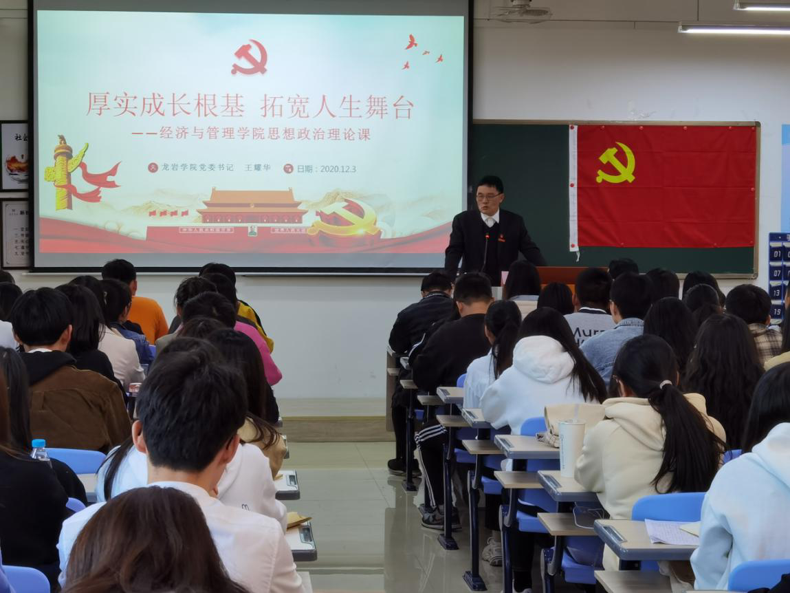 12月3日下午,校党委书记王耀华走上厚德楼教室讲台,为经济与管理学院近120名学生上了一堂以“厚实成长根基 拓宽人生舞台”为主题的思想政治理论课。经管学院学工队伍成员、学生党员和第十期发展对象等到场听课。
