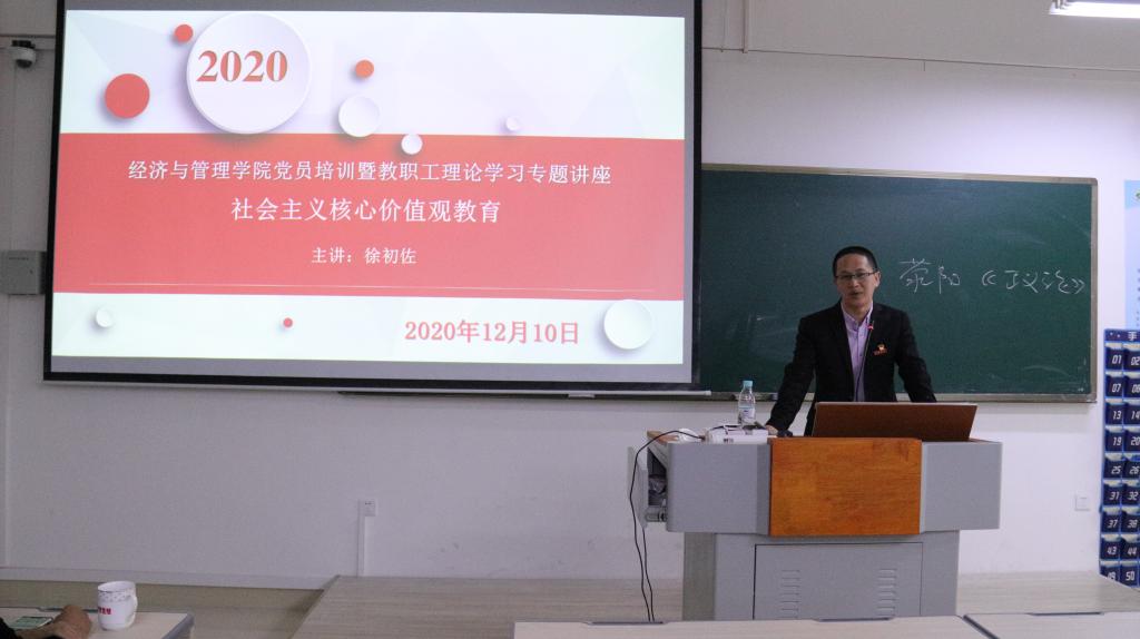 为了宣扬师德师风、党风廉政,弘扬社会主义核心价值观,12月10号下午,经管学院党委在厚416开展党员培训暨教职工理论学习。经管学院党委书记兼院长蔡立雄主持,徐维群教授和徐初佐副教授主讲,经管学院全院教工及全体师生党员共同参与。