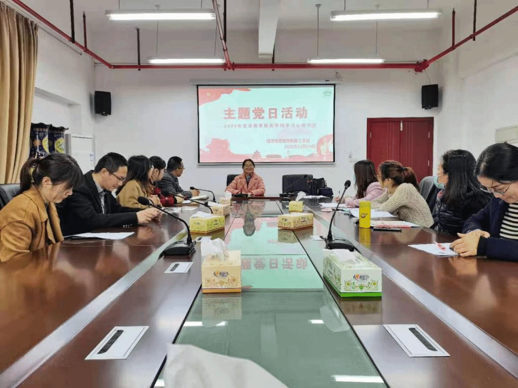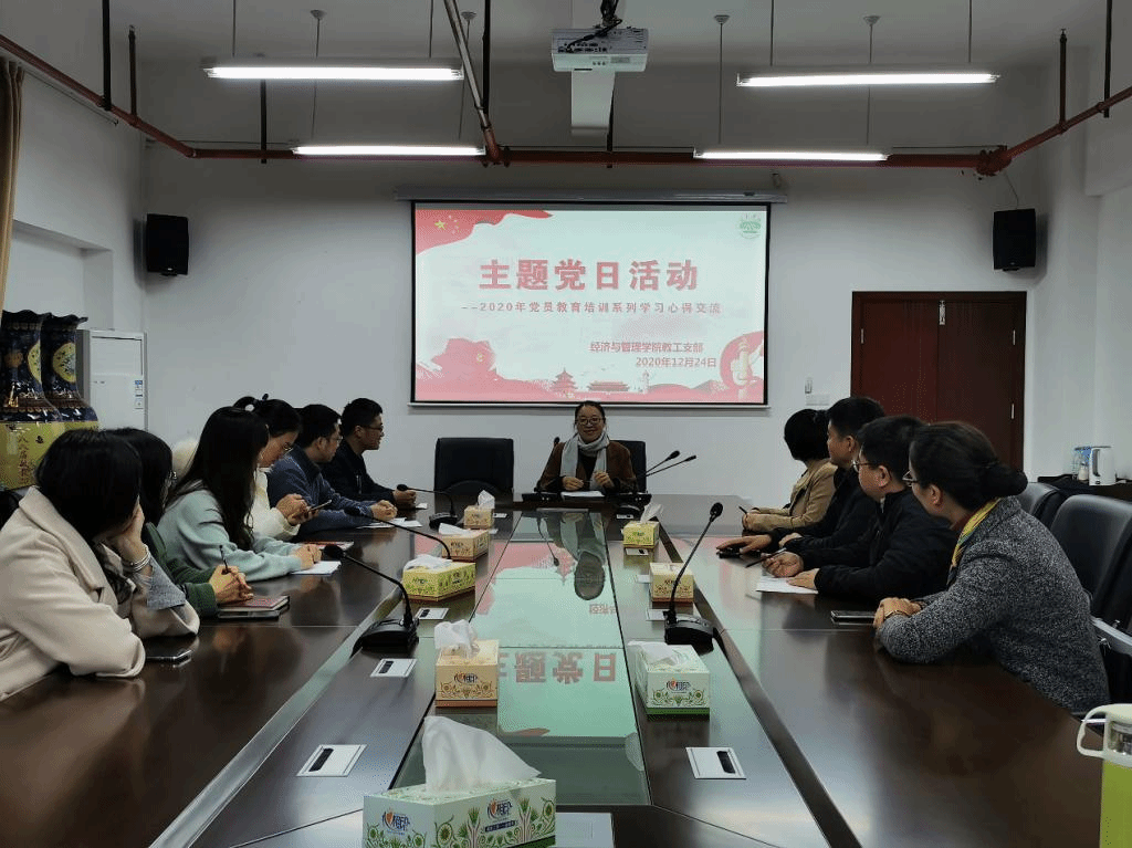 12月24日下午,经管院各支部开展了主题为“2020年党员教育培训系列学习讲座活动心得交流研讨”的主题党日活动,主题党日由各支部书记主持,党员们就本学期院党委开展的一系列的党员培训交流心得体会。教工第一支部书记胡昇平从“中国之治的新境界”到“绿水青山就是金山银山”、从党的发展史到感悟客家文化精神做廉洁奉公的好干部、从党的十九届五中全会的学习到社会主义核心价值观教育等主题作了回顾,她为广大党员们作了一个非常深刻的主旨发言。之后党员们就如何在理论的指引下胸怀祖国、如何以开拓创新精神更好的做好本职工作,如何争做新时代的好教育工作者做了深入交流,取得良好的效果,让各位党员们更加明确了未来工作方向。