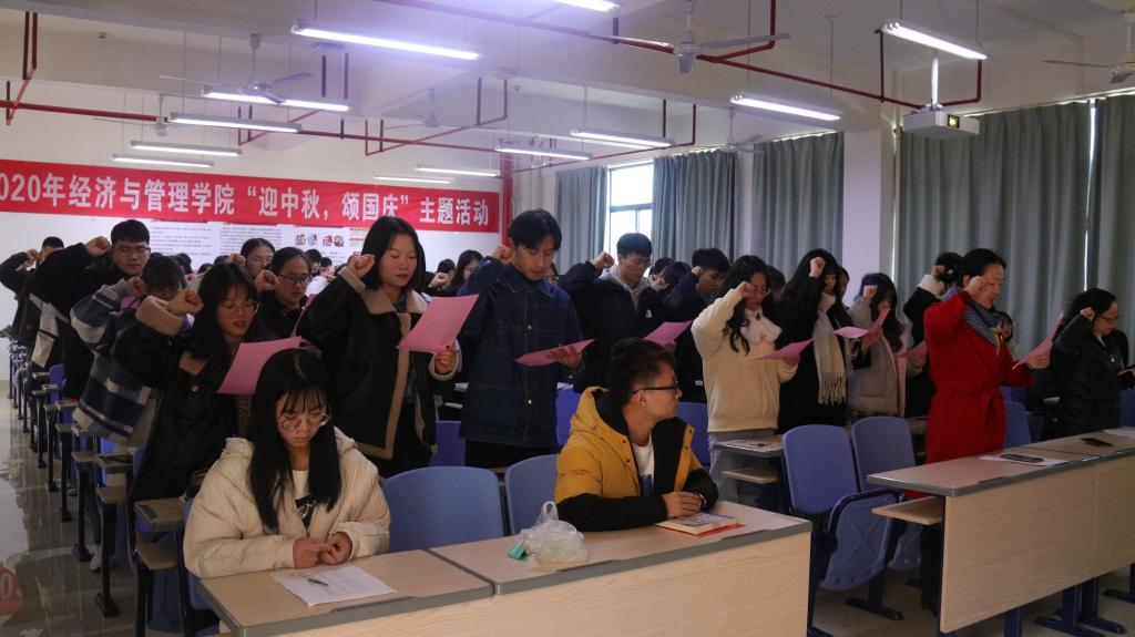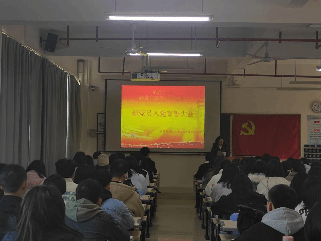 12月30日,经管学院党委在厚德楼401举行新党员入党宣誓大会,为2020年下半年新入党的63名预备党员举行了集体入党宣誓仪式,本次大会由党委组织委员陈淑华老师主持,经管学院党委副书记郑凌燕老师出席大会。