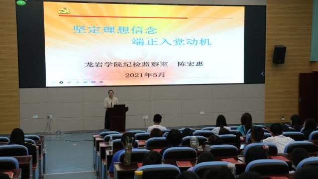 5月10日晚,经管学院在厚德楼206举办了“坚定理想信念,端正入党动机”主题教育讲座,本次讲座邀请到龙岩学院纪检监察室陈宏惠老师担任主讲人,经济与管理学院全体入党积极分子聆听了专题讲座。
