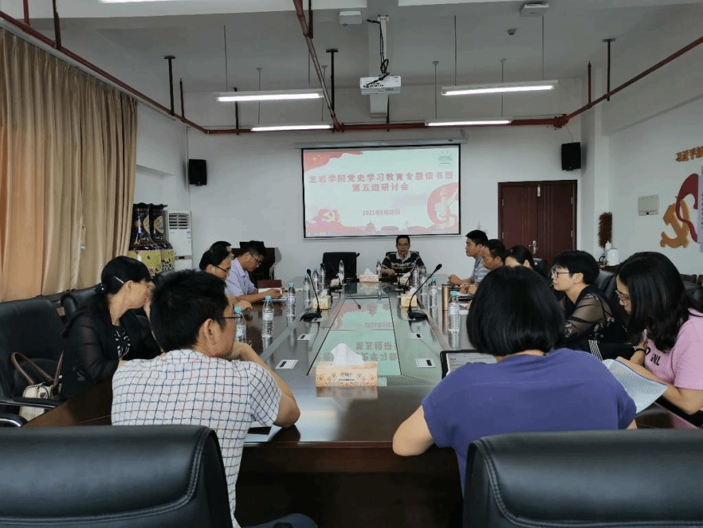 5月20日下午,龙岩学院党史学习教育专题读书班第五组在厚619举行研讨会,经管学院、外语学院、传播学院的领导参加研讨,研讨会由第五组组长蔡立雄主持。