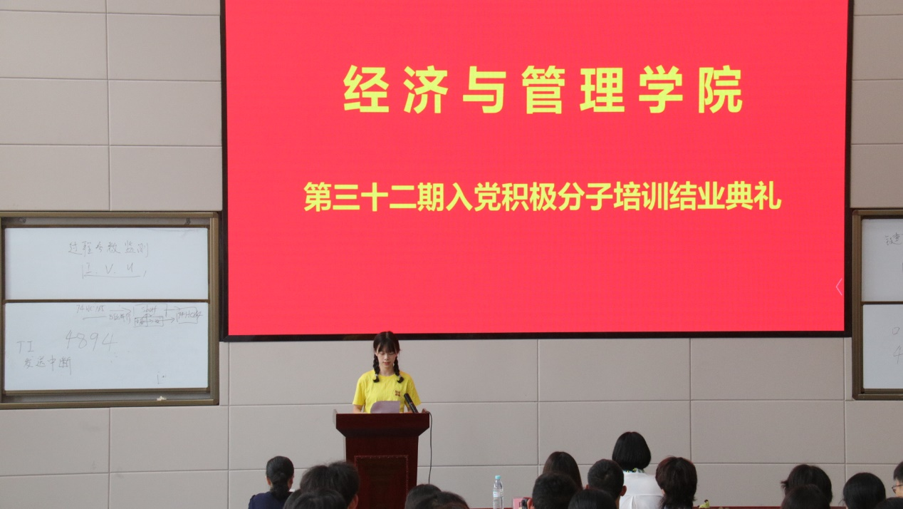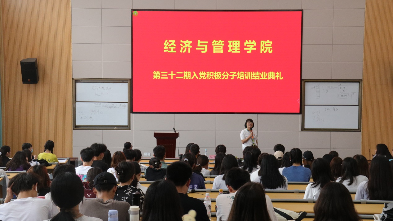结业典礼上,入党积极分子培训班学员代表陈苗表示:“路漫漫其修远兮,吾将上下而求索,我们将时刻以一名共产党员的标准来要求自己,请党组织在实践中考验我们!”张小玲、陈淑华两位老师为入党积极分子培训班学员代表颁发结业证书。结业典礼最后,张小玲建议所有学员要认真学习党史,可以先看《中国共产党简史》,再看《毛泽东选集》,以史为鉴,不断进步。她强调:“我们要多花时间做事,多读党史,砥砺前行。”