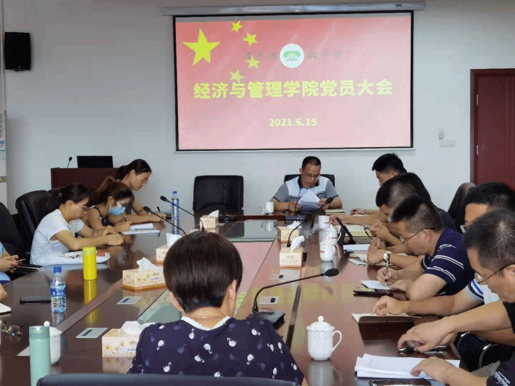 经管院党委于6月15日下午4点在厚619会议室召开院教工党员大会。会上,党委书记蔡立雄首先向全体党员传达省委十届十二次会议精神及贯彻意见,蔡书记强调,党员教师一定要发挥党员先锋模范作用,做好毕业生就业指导、课程体系建设与师资队伍建设等工作。接着,院领导就各自分管的工作进行了部署,常务副院长黄可权就融入并服务于新发展格局做了部署,要求全体党员要吃透省委十届十二次全会精神,在服务和融入新发展格局中展现新作为。党委副书记张小玲就毕业生就业工作和建党百年活动与氛围营造进行了部署,副院长郑国诜就招生宣传工作进行了部署,副院长吴盛汉就课程体系与师资队伍建设进行了部署。