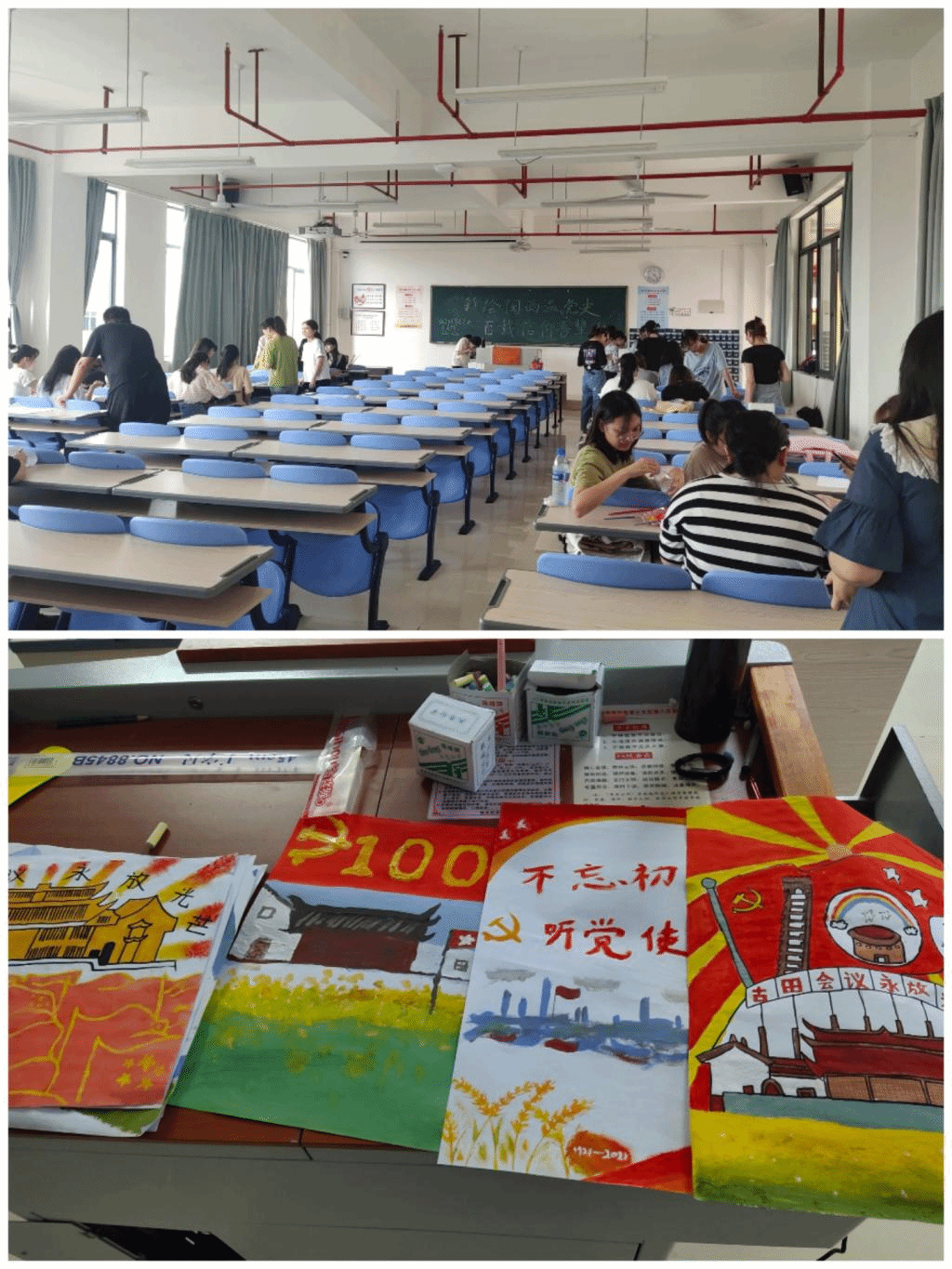 此次的主题党日活动召集支部全体成员,通过彩绘闽西的形式重温党的历史,从百年党史中汲取信仰力量。在活动过程中,支部成员积极认真投入到绘画海报中,大家分工明确,各小组讨论活跃,为自己小组的作品建言献策,向我们展示了一幅幅优秀的作品。这次主题活动让我们看到支部团结一致的凝聚力,营造了良好的支部氛围。