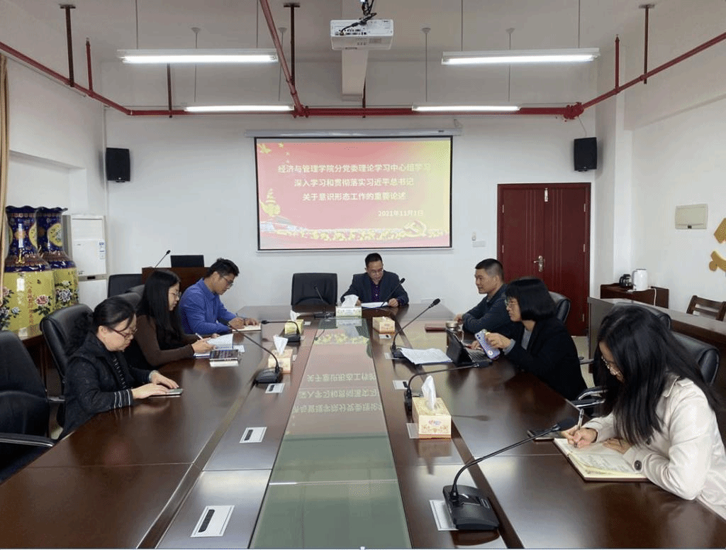 11月1日上午,经管学院党委于厚德楼619召开理论学习中心组学习会,深入学习和贯彻落实习近平总书记关于意识形态工作的重要论述。本次会议由党委书记、院长蔡立雄主持,中心组全体成员参会。