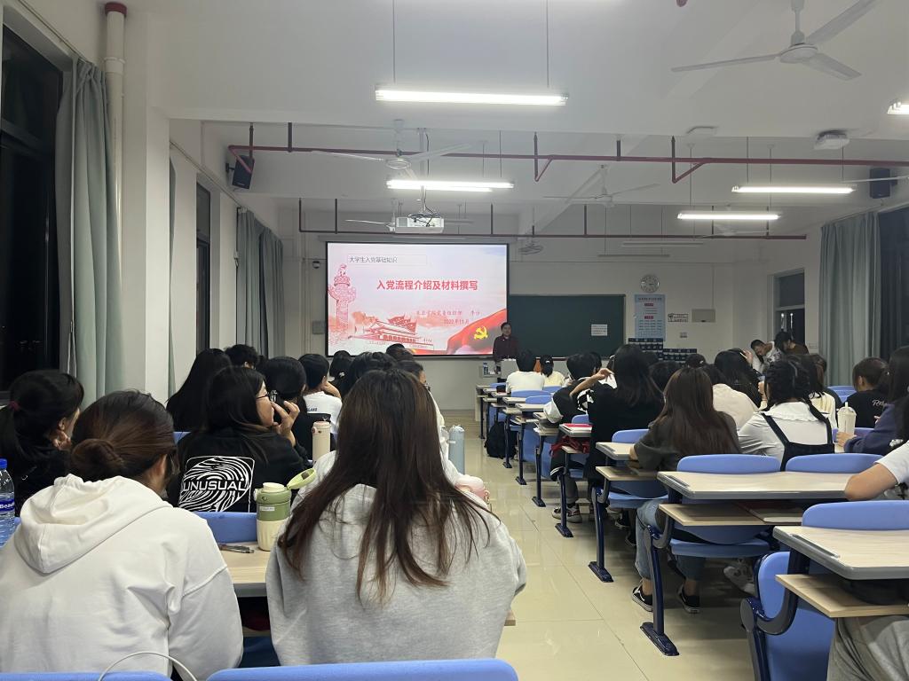 课上,李沙以“树立优秀的党员形象”作为切入点,详细介绍了发展党员工作要求、入党流程及入党材料的撰写。她强调,在材料撰写的过程中,同学们应本着对自己、对组织高度负责任的态度,严格按照要求规范填写。希望所有同学要不断学习党的基本理论知识,熟悉党员发展流程和材料撰写,做到知行合一,从实际行动出发,提升思想觉悟,端正入党动机,时刻体现党员的先进性,不断发挥党员的先锋模范作用。