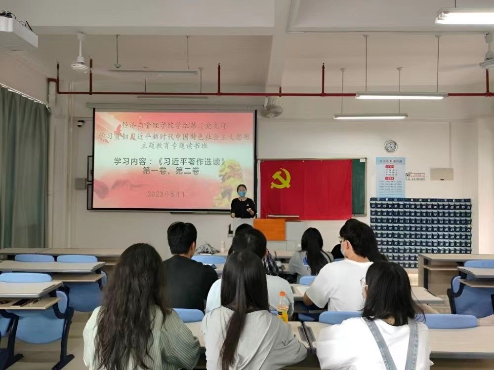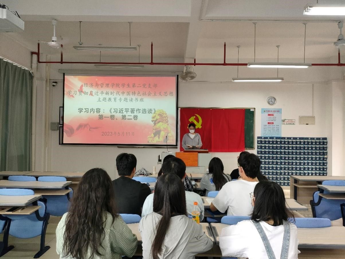 根据主题教育的学习任务和要求,5月11日下午,经济与管理学院学生第二党支部在厚德楼404室举办学习贯彻习近平新时代中国特色社会主义思想主题教育读书班,集中进行读原著学原文悟原理。本次读书班由学生第二党支部书记翁佳妮主持,全体支部党员参加。