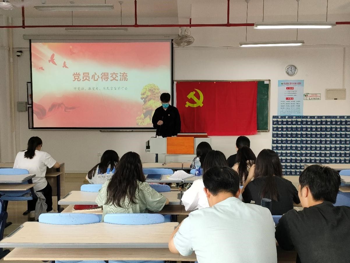 学生党员田晶领学导读《习近平著作选读》开卷篇——《高举中国特色社会主义伟大旗帜,为全面建设社会主义现代化国家而团结奋斗》中的部分内容。大家仔细聆听后,积极参与研讨,张留康同志上台分享心得。他表示,我们要向习近平总书记期望的那样,坚定不移听党话、跟党走,怀抱梦想又脚踏实地,敢想敢为又善作善成,立志做有理想、敢担当、能吃苦、肯奋斗的新时代好青年。