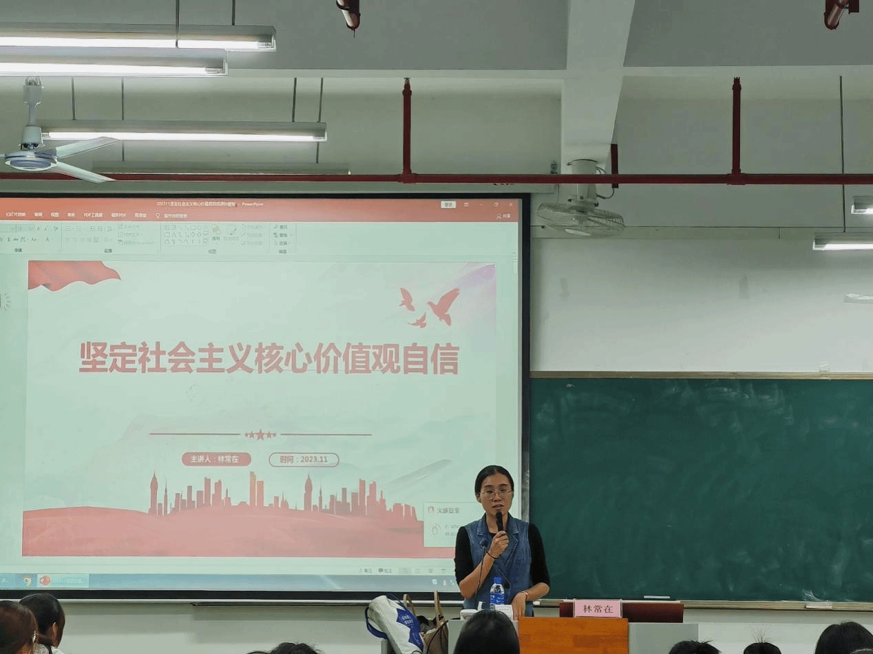 11月6日,经管学院第三十七期入党积极分子培训班在厚德楼214教室开展了主题为《坚定社会主义核心价值观自信》的第二讲,由林常在老师主讲,经管学院全体入党积极分子参加。