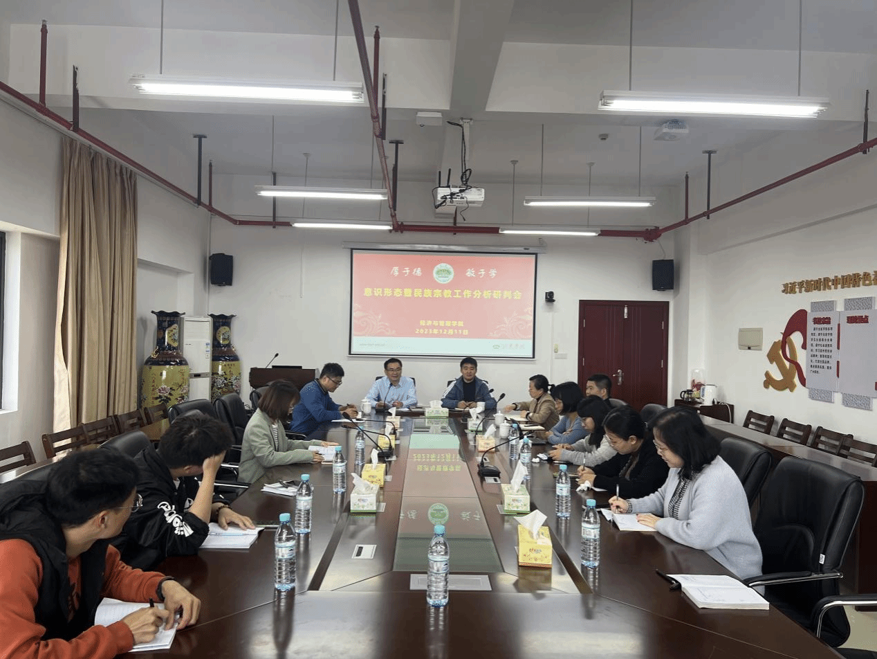 12月11日,经管学院于厚619召开2023年下半年意识形态暨民族宗教工作分析研判会。会议由院党委书记卢永衡主持,院党委委员、各党支部书记、各年级辅导员参加会议。