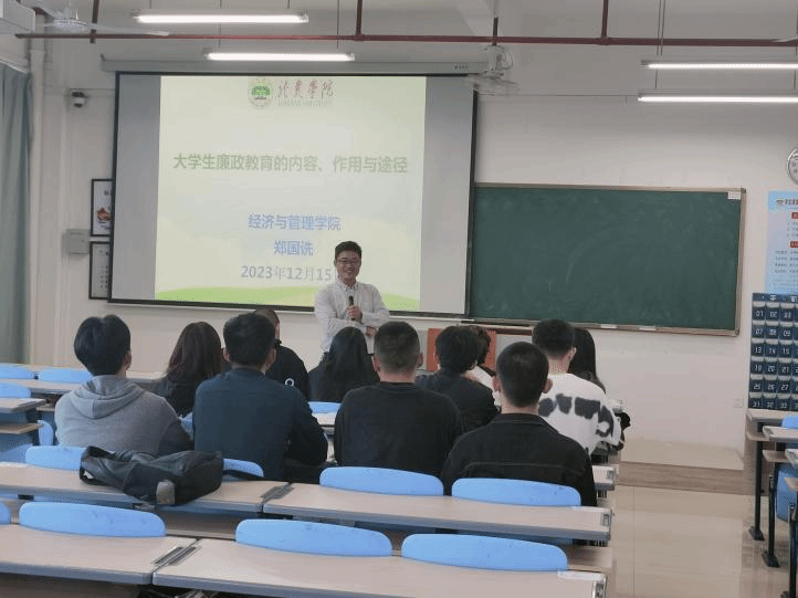 郑国诜从大学生廉政教育的内涵、大学生廉政教育的内容、大学生廉政教育的作用、大学生廉政教育的途径等方面进行讲述,希望通过廉政教育,大学生能够更加了解国家法律法规对廉政建设的要求和规定,增强法律意识和法律素养,树立正确的价值观和道德观念,提高道德素质和人格魅力,自觉培养高尚的品德和廉洁自律的品质。