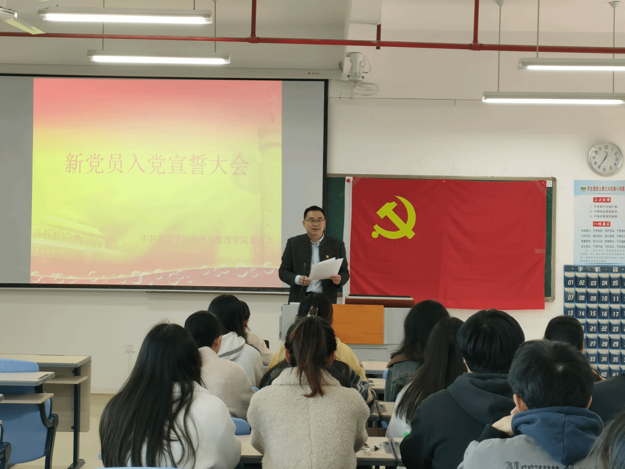 1月4日,经管学院党委在厚德楼401举行新党员入党宣誓大会。院党委书记卢永衡、部分学生党员、2023年下半年新发展的预备党员参会,大会由院党委专职组织员陈淑华主持。