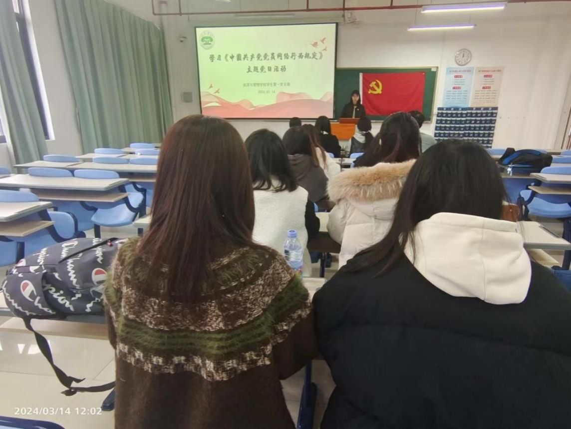 为深入贯彻习近平总书记关于网络强国的重要思想,充分发挥党员干部在网络空间的模范带头作用,积极营造健康向上的网络环境。3月14日,经济与管理学院学生第一党支部在厚德楼416开展学习《中国共产党党员网络行为规定》的主题党日活动。