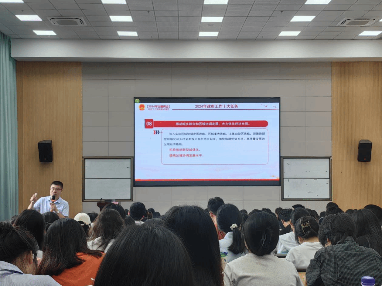 培训会上,石玉昌老师首先解读了今年政府工作的10大任务及在新形势下的工作安排,以此加深经管学院青马班的学生对十大任务的认识。接着石玉昌老师结合自己的学习心得介绍了新质生产力的内涵和意义,以及如何发展新质生产力。让青马班同学对新质生产力的认识得到提升。
