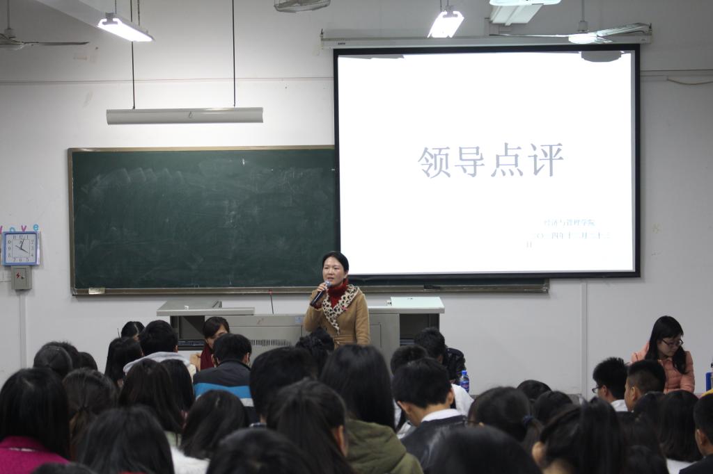 12月23日下午,我院于教学楼举办以“言行当至诚,立世信为基”为主题的道德讲堂。院党总支副书记郑凌燕,各年级辅导员及学生共150余人参加此次活动。
