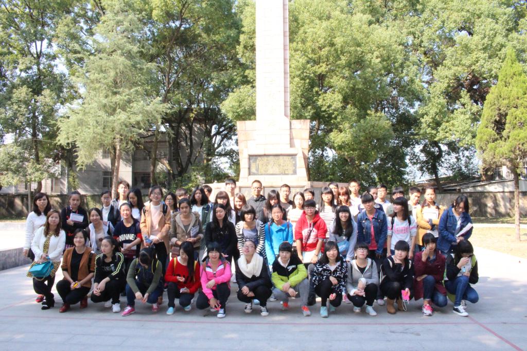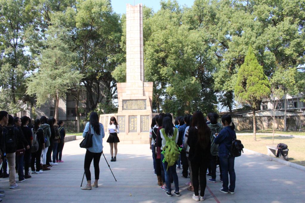 2014年9月23日我院于东肖烈士纪念碑前开展以“立报国之志,践爱国之行”的道德讲堂活动,团委书记饶进出席,此外14级国贸二班全体同学参与了本次道德讲堂活动。
