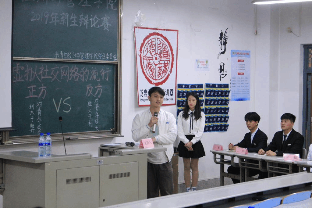 3月16日上午,经管学院在文虎楼107举办新生辩论赛。此次辩论赛分为两场,第一场是市场营销队伍对战投资学队伍,第二场是国贸2班队伍对战旅游管理队伍。