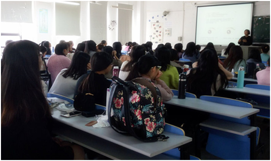 为提高在校大学生综合素养,使同学们掌握化妆技能,12月7日,经管学院特邀龙岩美妆工作室化妆师林小华于信218为2013级国贸毕业班学生进行化妆课程讲解。