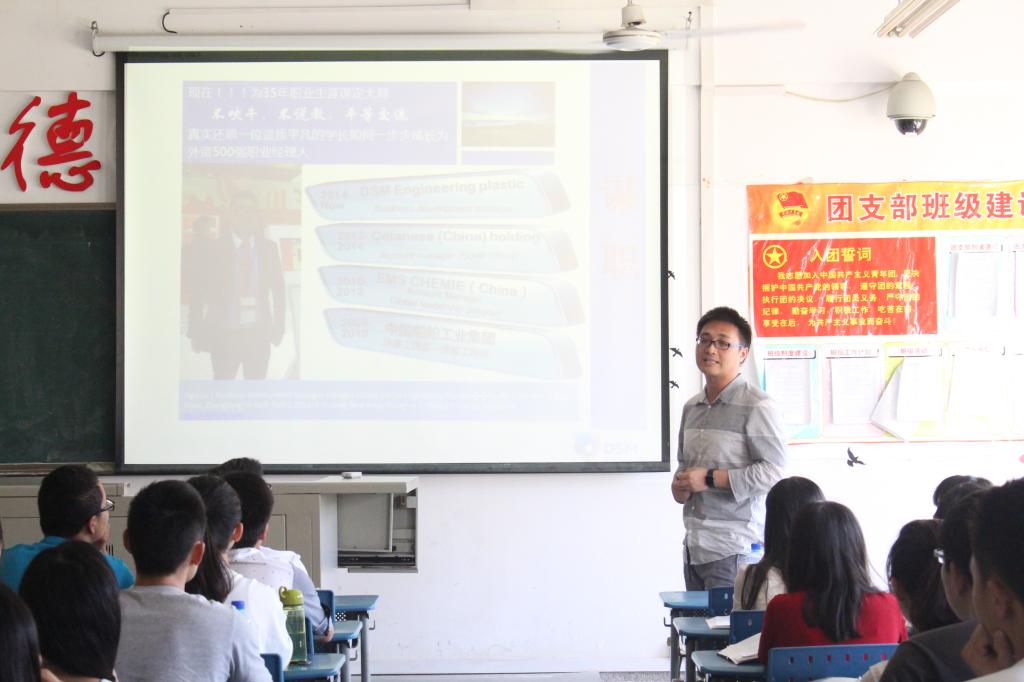 5月15日上午,我院在同心楼教室举办外企职业发展专题讲座,邀请DSM(荷兰)公司业务发展经理卢铭作为讲座的主讲嘉宾。市场营销专业100余名参与此次活动。