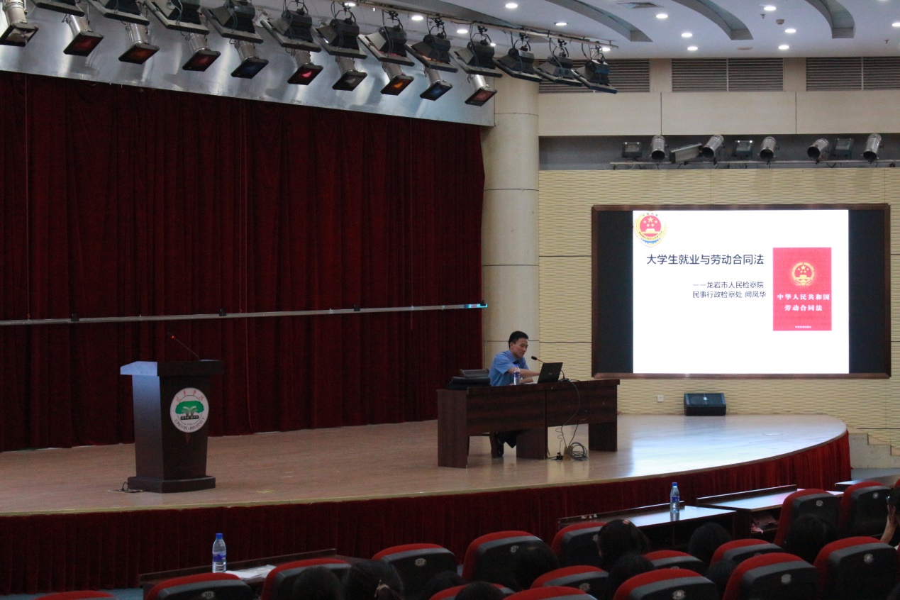 927日下午,经管学院邀请龙岩市检察院民事行政检察处阙凤华检察官为毕业生开设就业与劳动合同法主题讲座。经管学院2015级全体毕业生到场学习。