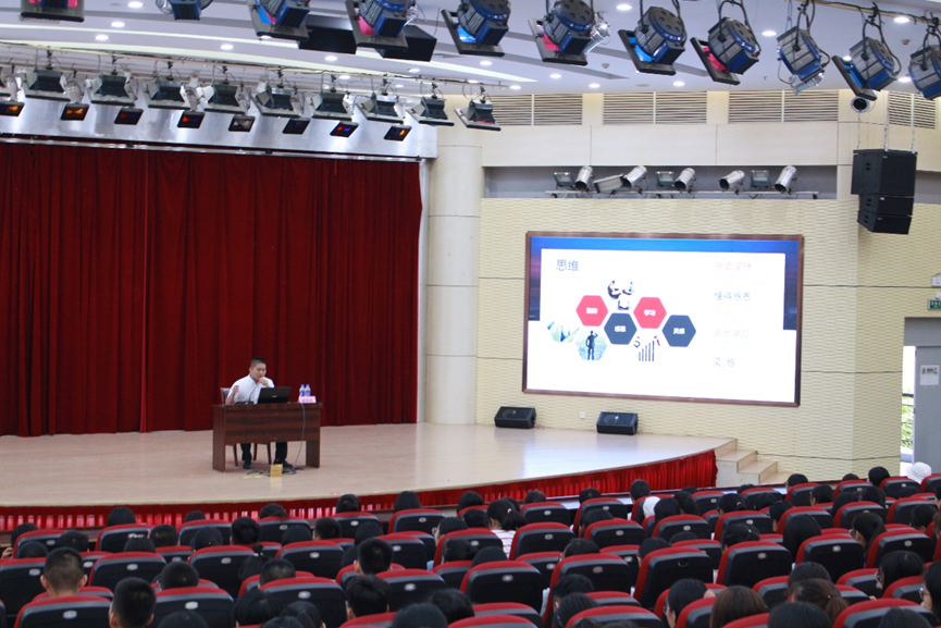 分享会上,潘振胜结合了自己的就业创业经历,和同学们分享了创业过程中可能出现的心理问题及解决方法,同时向新生就如何锻炼和提高自己的竞争力提出了四点要求:一、打好基础,学好专业知识是重中之重;二、博览群书,多涉及各方面的知识,提升综合素质和能力;三、树立目标,执着追寻。在校期间要树立自己的目标和人生梦想,并不断磨砺意志,不畏艰难,敢于攀登,勇于创新。要珍惜时光,利用好学校丰富的图书资料、良好的学习环境以及各种学术交流的机会,拓宽视野,丰富知识,为实现自己既定的目标和人生梦想执着追寻;四、锻炼好身体,提高身体素质与体能,为以后走上工作岗位储备好“本钱”。