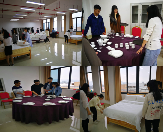3月29日下午,经管学院旅游管理专业“第二课堂”活动再次开展,活动继续延续上一次的模式,面向旅游管理专业学生,由进行过顶岗实习有一定工作经验的三年级学生来指导一、二年级的学生们学习咖啡调制、中西式摆台和中式铺床等基本技能,并且进行深度交流,让一、二年级的学生们可以了解酒店实际经营管理中的客房、餐饮等部门的操作细节和服务流程。