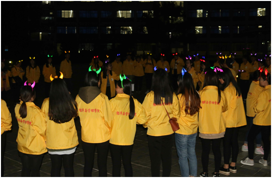 “你觉得我是天底下最美的人吗?”“当然啦”。为弘扬心理健康文化,提高学生心理健康意识,丰富同学们业余生活,11月11日晚,由经管学院主办的“心星之火,辉映我心”荧光团辅活动在同心广场举行。经管学院党委副书记郑凌燕、团委书记饶进以及各年级辅导员来到活动现场,与同学们一起打开心扉、完成比赛,共60余名学生参加了此次团辅活动。